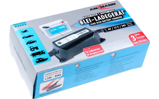Werden die Polklemmen vertauscht angebracht, leuchtet die LED auf der Anzeige rot. Ein langes Kabel von 2,0m ist besonders praktisch und ermöglicht Ladungen ohne Verlängerungskabel. Durch ein spezielles, in Eigenentwicklung entstandenes Ladeverfahren mit Ladestromregelung und überladeschutz erfolgt nach der vollständigen Aufladung die automatische Umschaltung auf Erhaltungsladung. So wird der Akku nicht überladen und kann auch über einen längeren Zeitraum am Ladegerät angeschlossen bleiben.