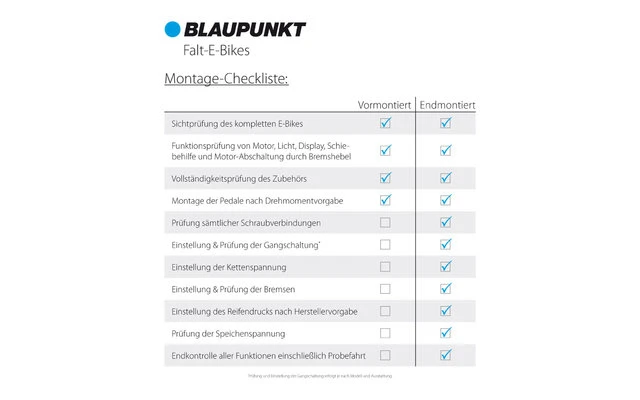 Die Serviceleistungen sind nur fĂŒr Blaupunkt E-Bikes anwendbar. Modelle anderer Hersteller sind von den Leistungen ausgeschlossen.