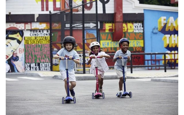 Auch das maxi micro deluxe strahlt neu mit funkelnden LED-Rädern. Der Schulweg wird zur Lichtshow – dank den illuminierten Rädern sieht man dich schon von weitem und das auch im Dunkeln. Die LED-Version sieht nicht nur cooler aus, sondern sorgt auch für höhere Sicherheit.