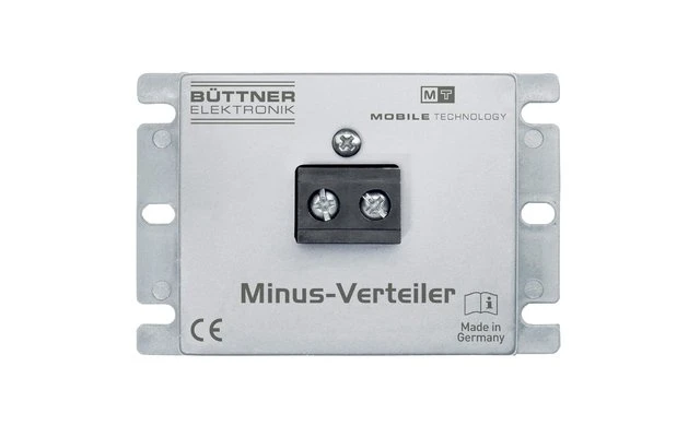 Kompakter 12fach Verteiler fĂŒr die Batterie-Minusseite. Eingang ĂŒber Sammelklemme (max. 50 A); Verteilung ĂŒber 12 einzelne AusgĂ€nge (max. 20 A).