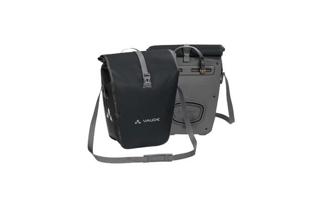 Auf in die große, weite Welt! Die zwei wasserdichten Hinterradtaschen werden aus robustem, PVC-freiem Planenmaterial klimaneutral am deutschen VAUDE-Standort in der Nähe des Bodensees hergestellt und würden gerne auf große Reisen gehen. Sie lassen sich durch den Wickelverschluss auf individuelle Größen bringen und absolut dicht verschließen.