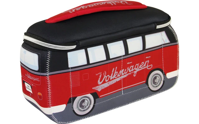 Einzigartige Universaltasche aus weichem Neopren in Form des legendären VW Bulli. Diese kultige Bulli Tasche kann viel und macht alles mit. Sie ist multifunktional verwendbar als Kulturbeutel, Kosmetiktasche, für Brotzeit, Werkzeug, Schuhputzutensilien oder als Reiseapotheke. Mit Kühlakkus kann die Tasche sogar als kleine Kühltasche verwendet werden. Viele praktische Details wie diverse Netzfächer, Haken zum Aufhängen, isolierendes Neoprenmaterial und großzügige Reißverschlussöffnung machen diesen Bulli zu einem perfekten Allrounder für alle Sportler, Weltenbummler, Autoschrauber, Lebenskünstler, Mamas, Papas und Kinder. Das Surfbrett auf dem Dach kann als Henkel zum Tragen der Tasche verwendet werden.